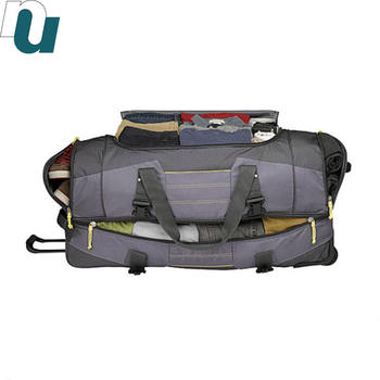 Cina fabbrica di alta qualità basso MOQ asciutto bagnato personalizzato tag Trolley ruota grande capacità bagaglio valigia 2 in 1 borsone per la squadra